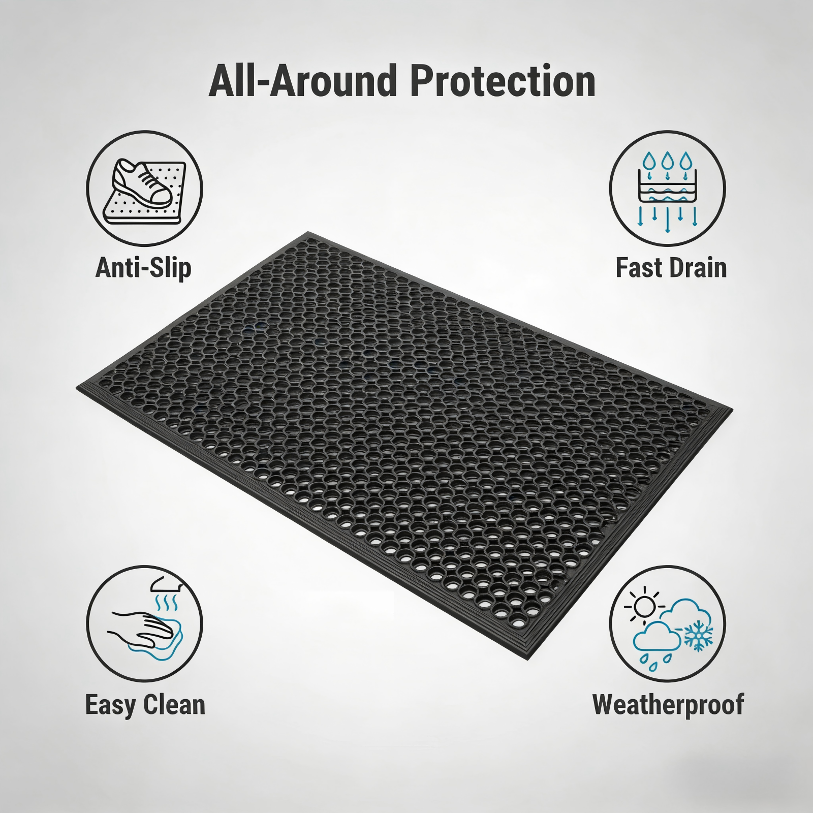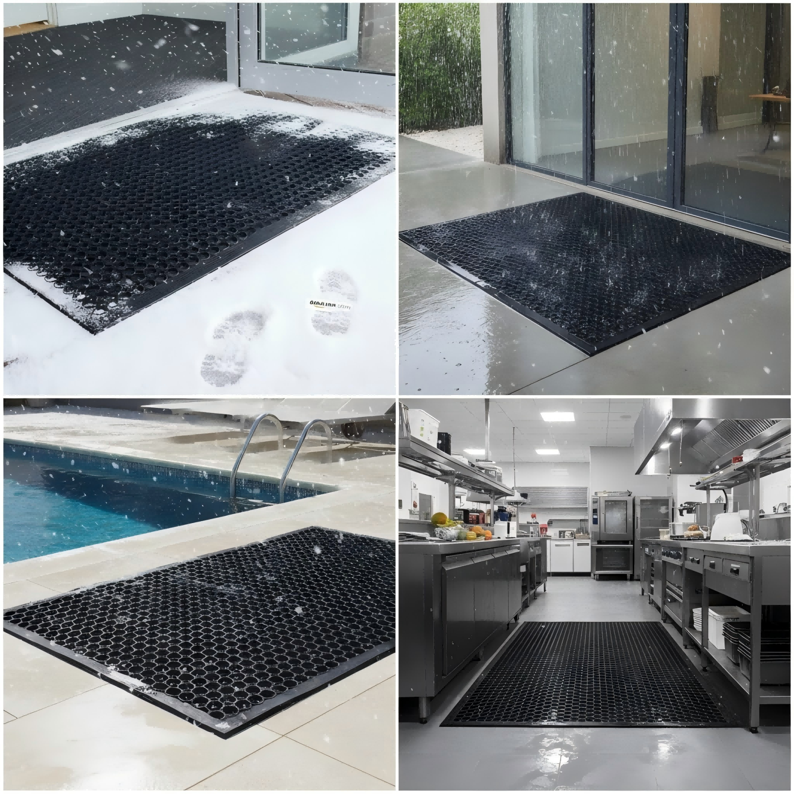 - Large Drainage Mat for Indoor Outdoor : Package comes with 1 large door mat - 59.06’’ x 35.43’’- 0.31" thick,with large hexagonal holes help to reduce the amount of slippery liquids and oils left on the floor and prevent dangerous accident