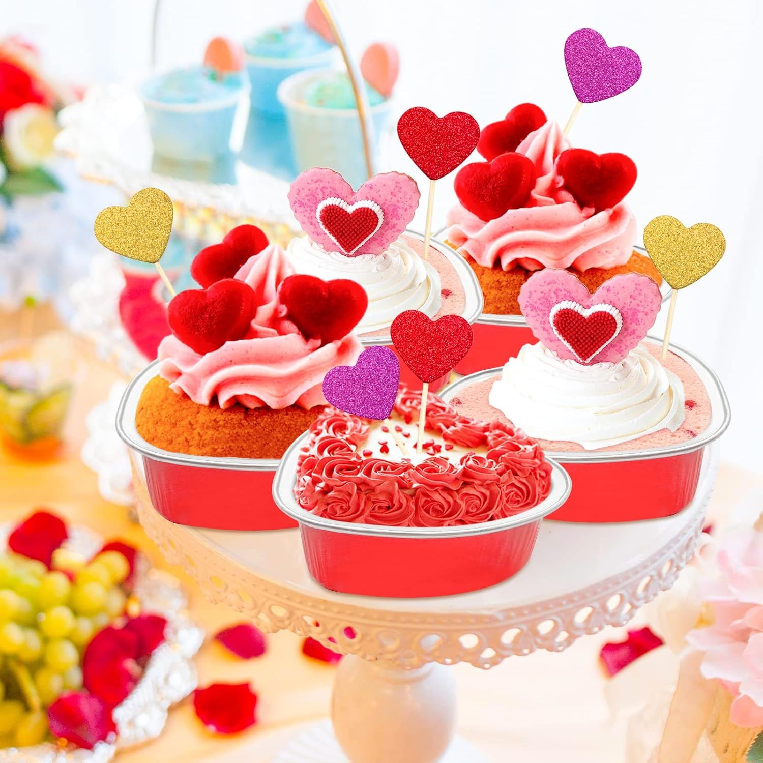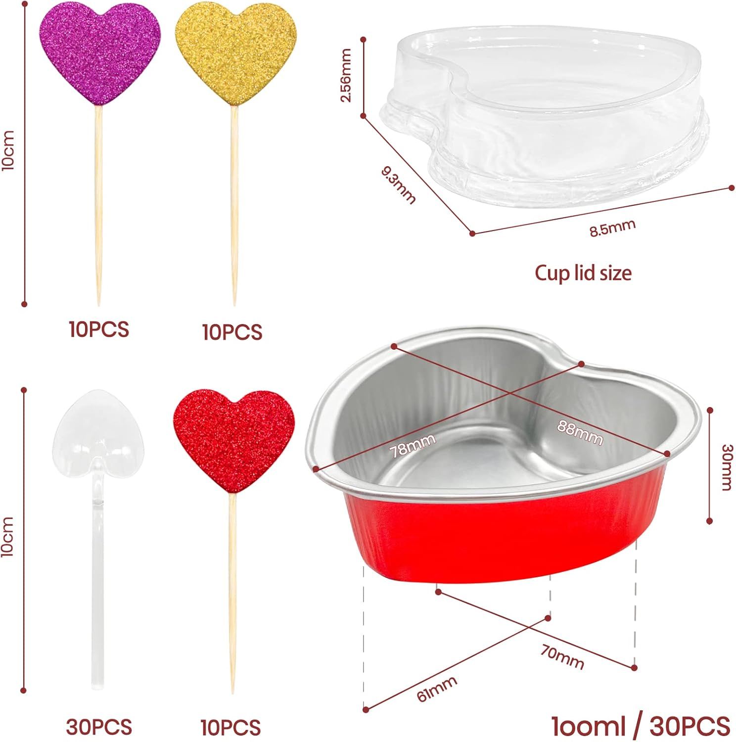 - 🧁Valentines Foil Cupcake Pan Set: you will get 30 sets red color aluminum foil cake pans with lids,30 pcs spoons and heart cupcake toppers, the cup capacity is 3.4 oz/ 100 ml; The large quantity baking pans are proper for Valentine's Day, Mother's Day, Christmas, birthday, anniversary, catering gathering, shower party and other year-round festivals